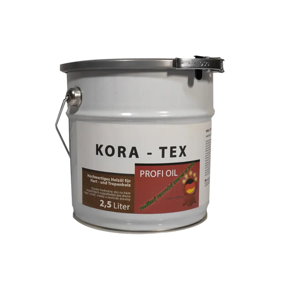 Olej KORA TEX PROFI OIL na drevo v profesionálnej kvalite na báze alkydových živíc a prírodných olejov s prísadou voskov. Určený je pre ochranu a zušľachtenie drevín hlavne v exteriéri.